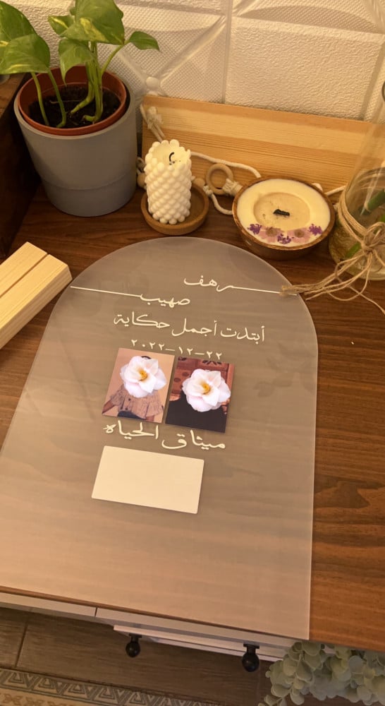 لوح عقد قران اكريلك ثلجي بستاند خشب