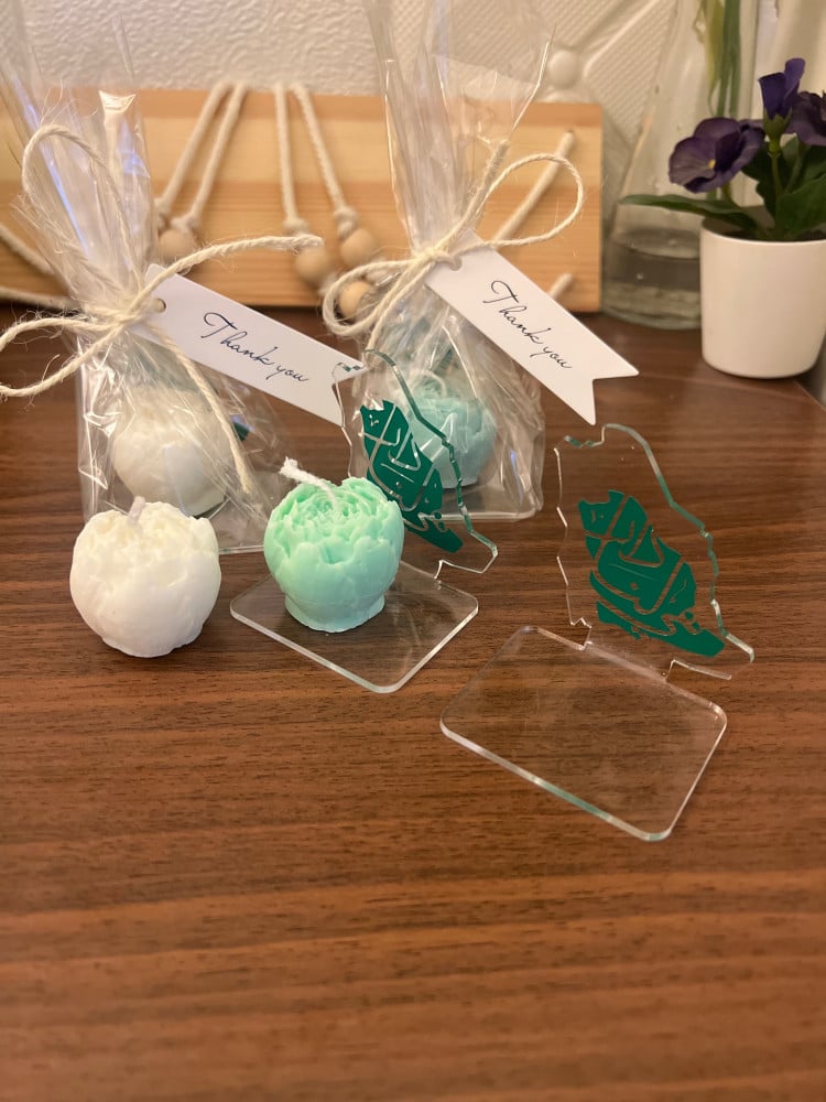 ستاند اكريلك هي لنا دار مع شموع صغيره اخضر وابيض توزيعات لليوم الوطني الكميه محدوده 💚