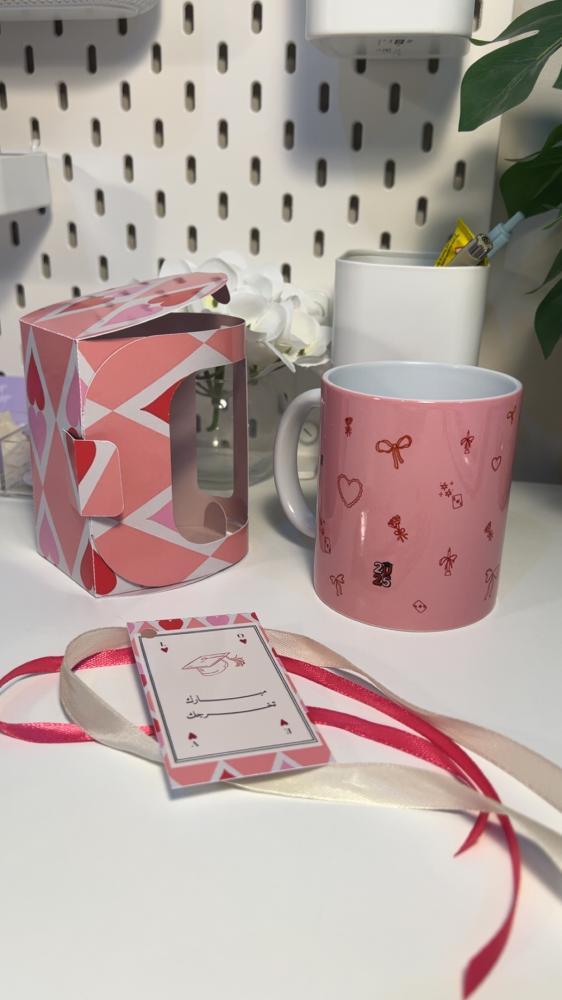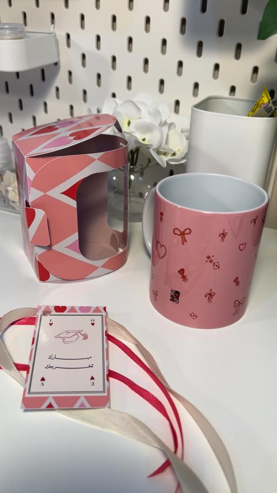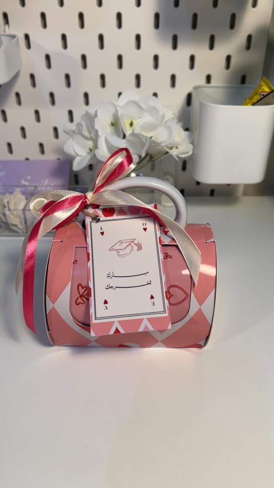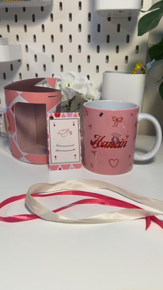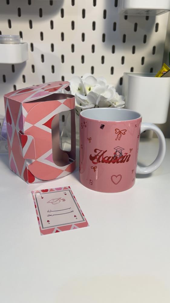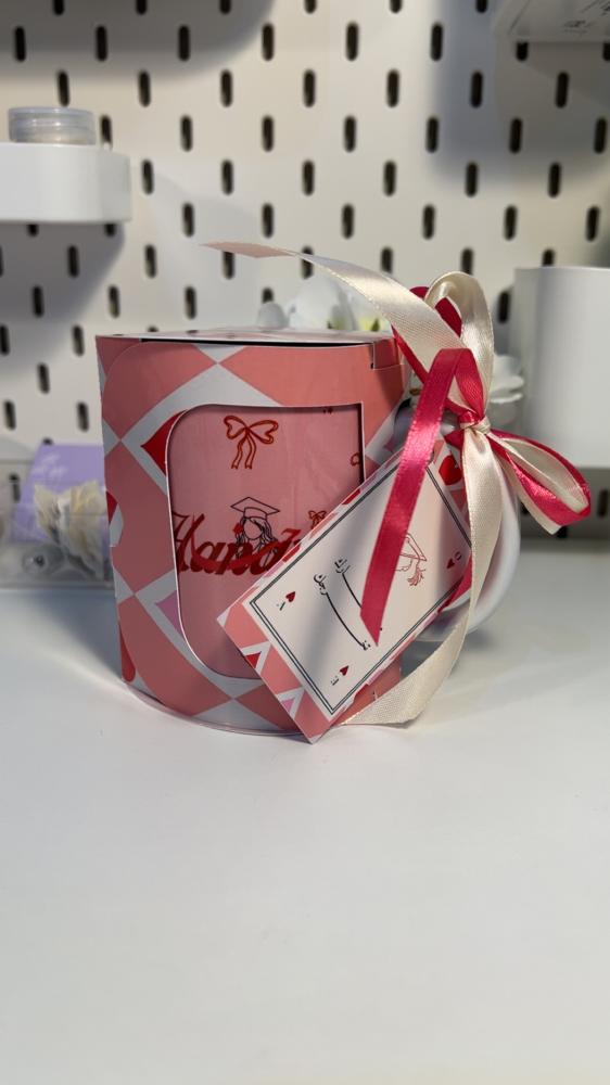 موجود السعر عزيزتي السعر للكوب بالتغليف بالكرت يطبع عليه الاسم و يمكنك اضافه عبارات بالكرت